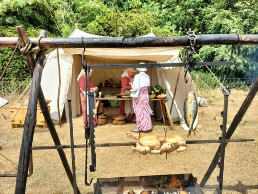 What, no spuds or sugar! Cooking over an open fire with authentic foods and information on medieval dietary theory.